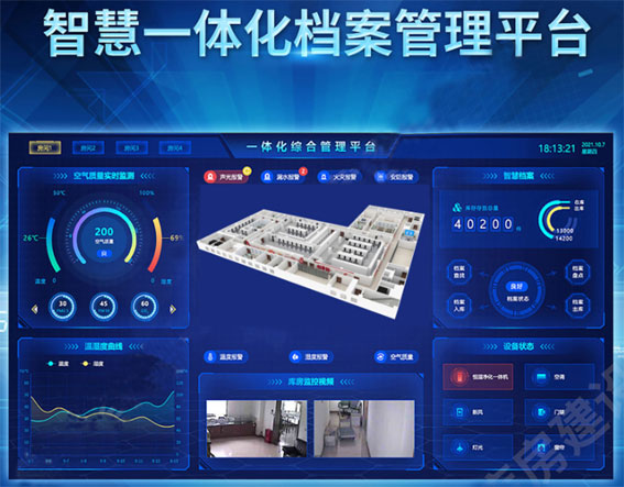 智慧档案馆管理平台即档案库房一体化智能管理系统包含智能回转柜管理、rfid档案管理系统、档案库房安防管理系统、档案库房消防灭火系统、档案库房环境管理系统。