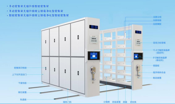 亮点:存储智能功能、防夹保护功能、禁止移动保护功能、温湿度监控功能、红外就功能、节能低碳模式设定、自动闭架功能、权限功能、档案查询定位功能、自动唤醒语音操作。