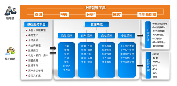 并实现全企业资产信息数据和管理的大集中;实现固定资产的全面管理和重点管理;实现非现场管理、盘点管理和移动管理;可实现与其他信息系统数据链接和共享。